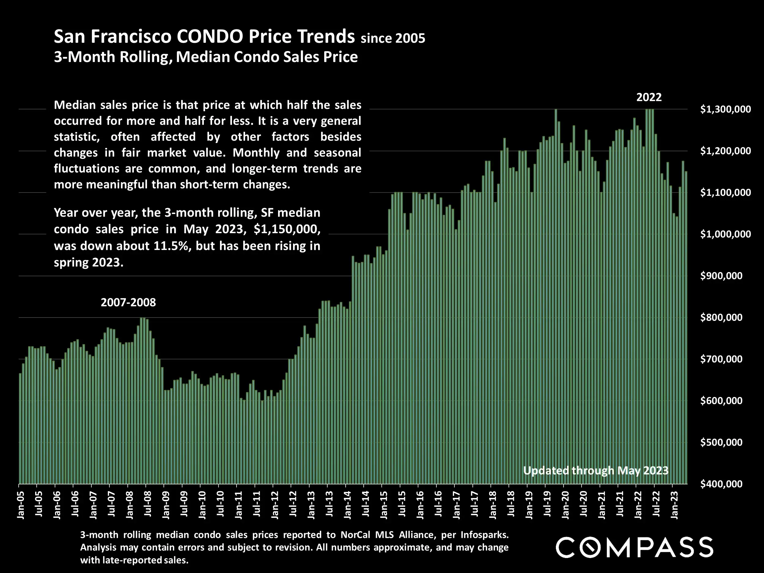 Year over year, the 3-month rolling median price is down about 11.5 % but has been climbing in recent months.