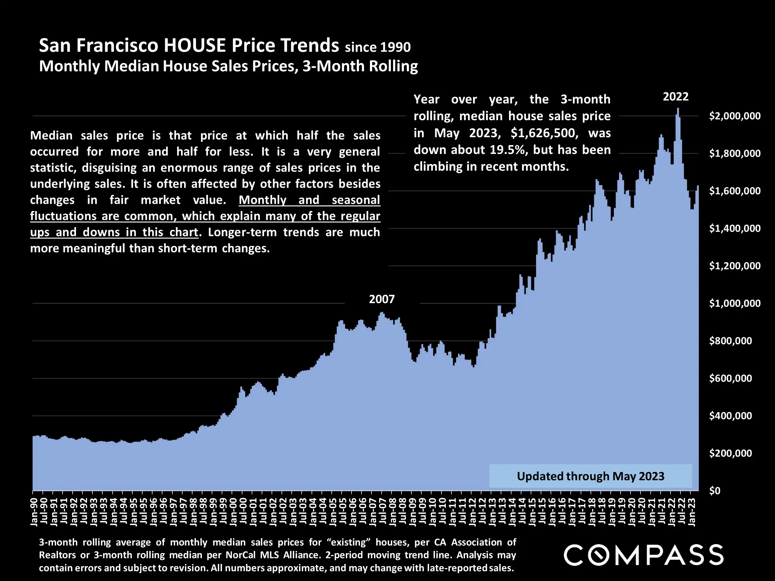 As we close out the Spring selling season median home sales prices have begun to recover from the mid-winter lows, though remain far below peak prices hit in spring 2022.