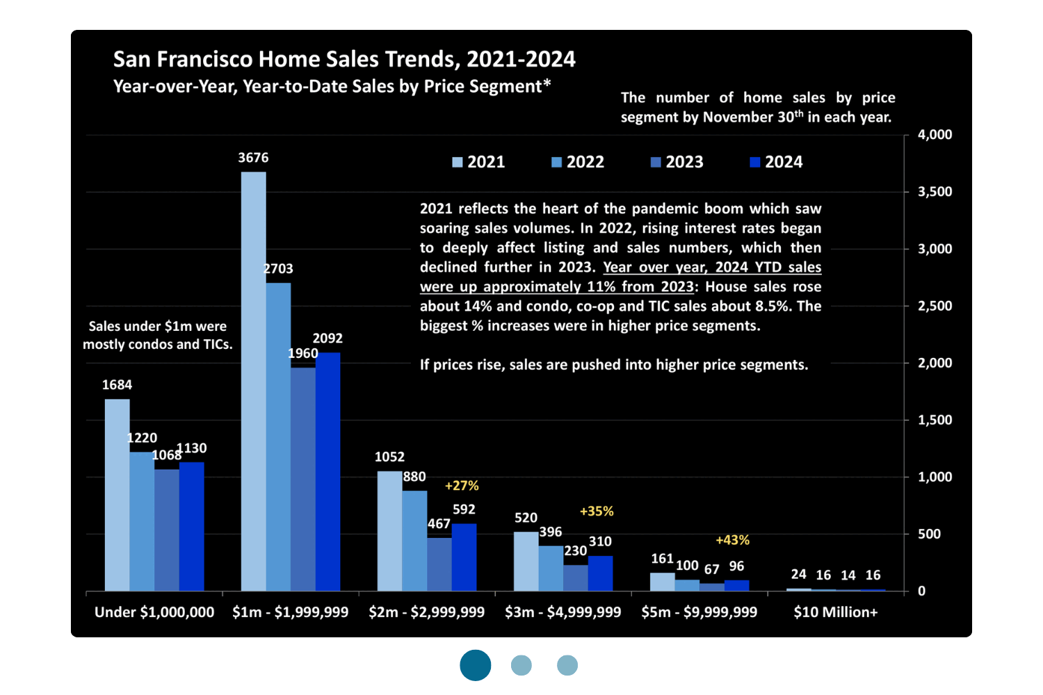 As the holiday season unfolds, there’s a special kind of magic in San Francisco! It’s a time for celebration, reflection, and the chance to embrace opportunities — even in real estate! While the mid-winter market may feel quieter, this is the perfect moment for buyers to find hidden gems and negotiate on properties that have lingered a bit longer, and it is a time for sellers to get their homes prepped and ready for the upcoming year. Homes are still selling, and the stage is set for a lively and promising market as we step into 2025.