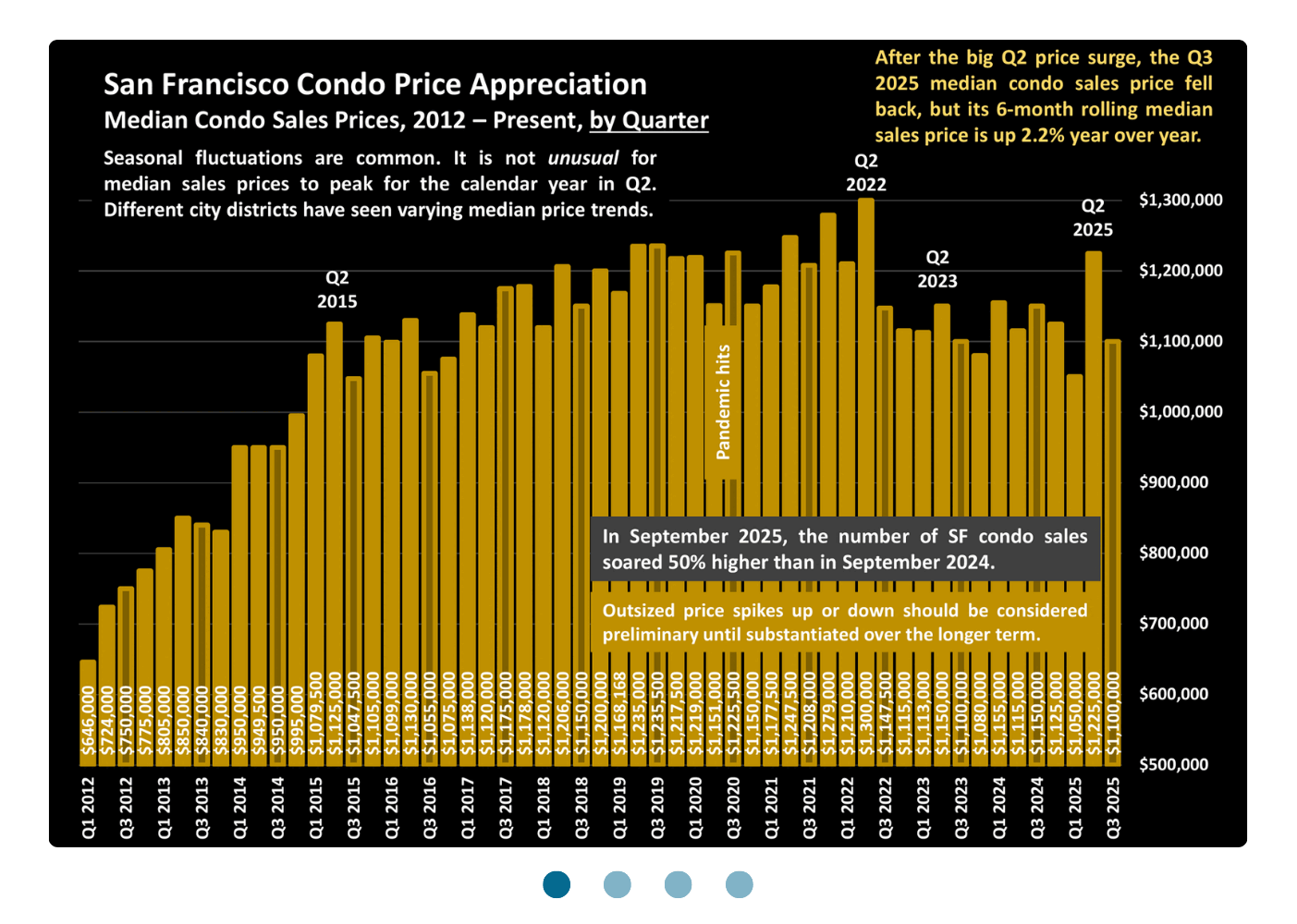 Even with chatter about cooler markets, sticky mortgage rates, and broader economic noise, San Francisco real estate isn’t tapping the brakes. The city remains lively with activity and opportunity: rents are rising at the fastest pace in the country, median sale prices are up year over year, and September stood out as sales, including luxury, and homes going into contract outpaced September 2024.