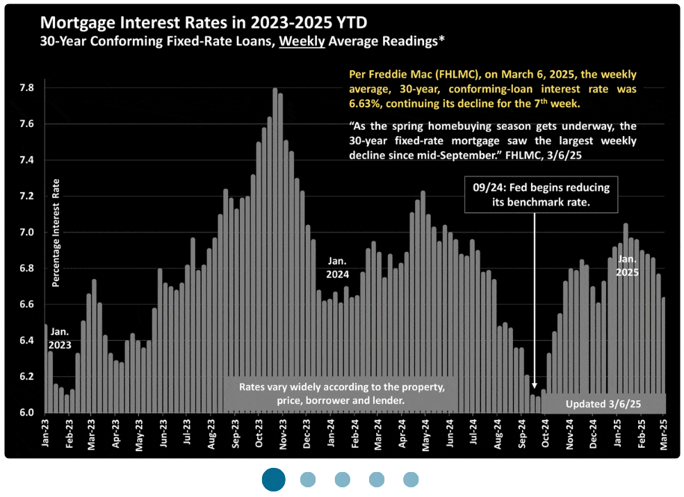 According to the SFGATE, mortgage rates have fallen again, giving homebuyers a boost as the spring market kicks off. The average 30-year fixed-rate mortgage dropped to 6.63% for the week ending March 6, down from 6.76% the previous week, according to Freddie Mac. This marks the seventh consecutive week of declining rates, bringing them back to levels last seen in December after peaking above 7% last month.
