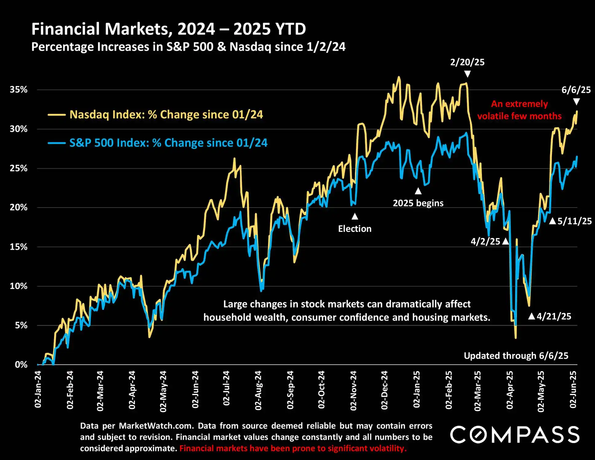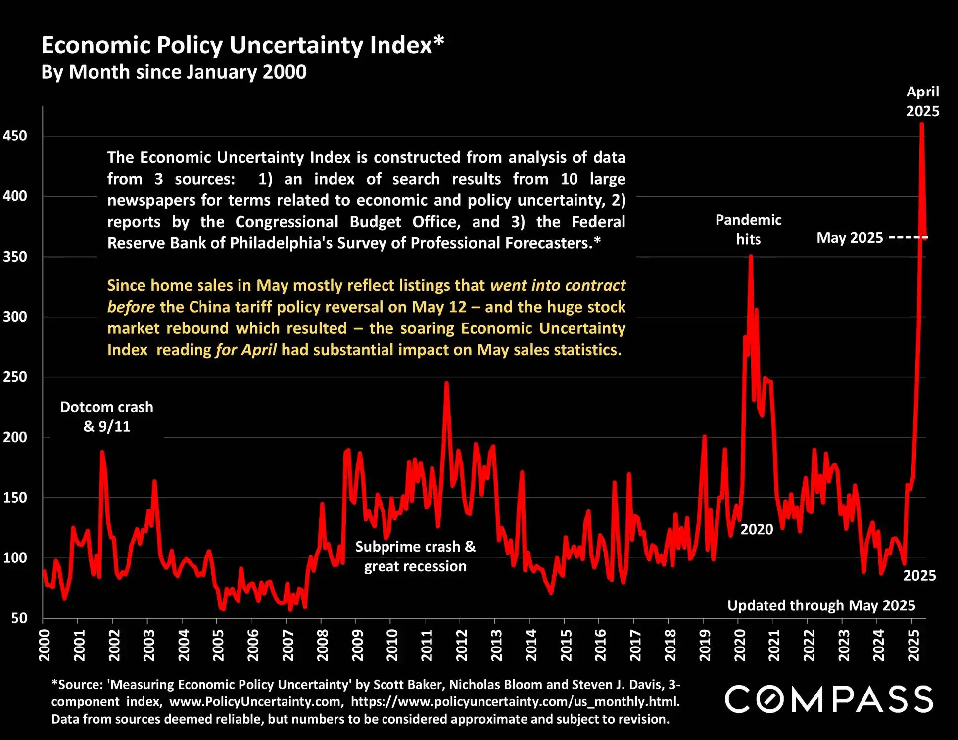 The speed and scale of developments in 2025 – tariffs, stock markets, inflation, interest rates, consumer confidence, tax law, national debt concerns, international relations, what the Fed decides, and so on – have made it challenging for real estate market reports to keep up. As always, real estate trends vary locally. The rest of this report focuses on the specifics of the San Francisco market.