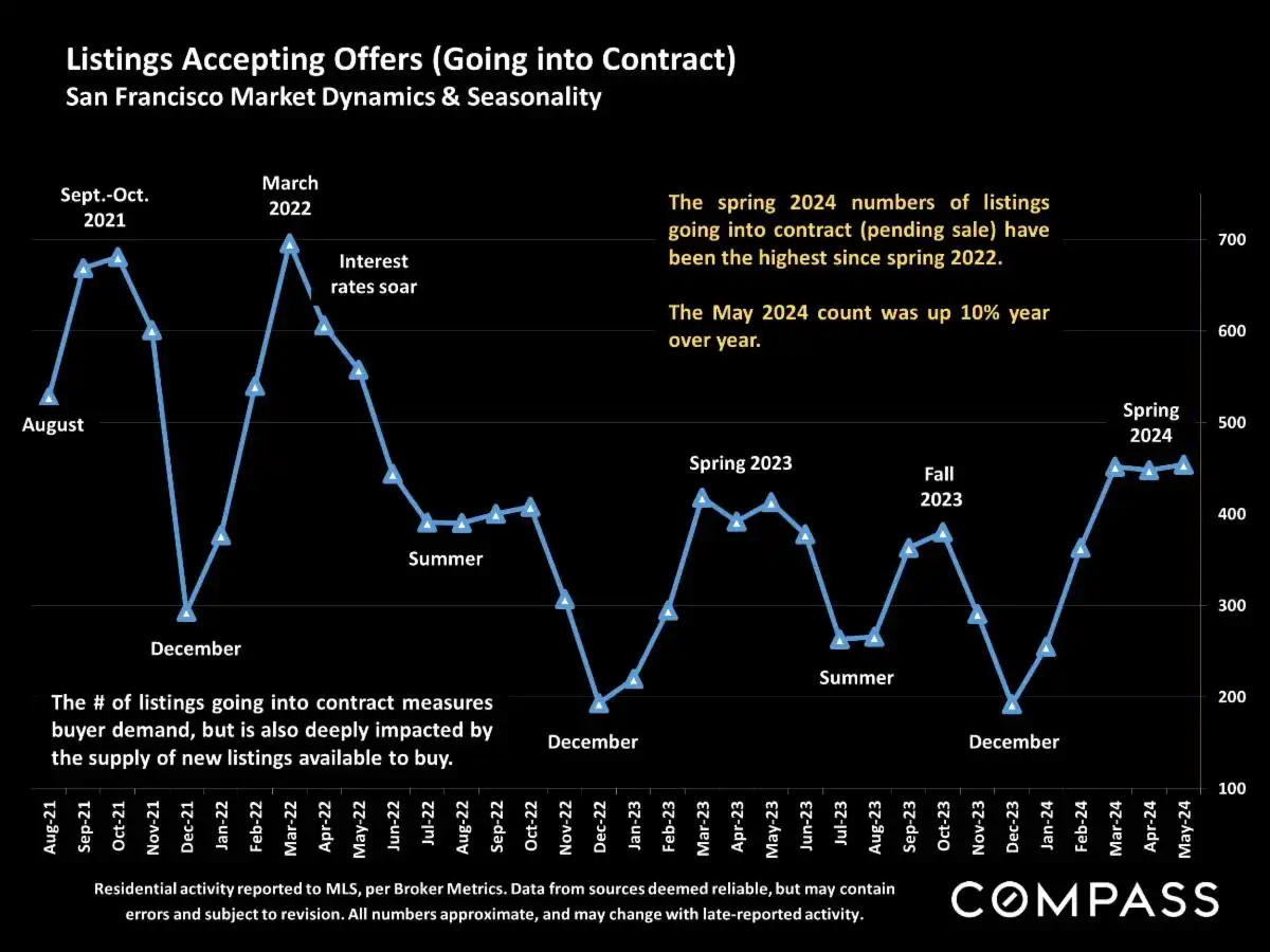 The spring 2023 numbers of listings going into contract (pending sale) have been the highest since spring 2022!