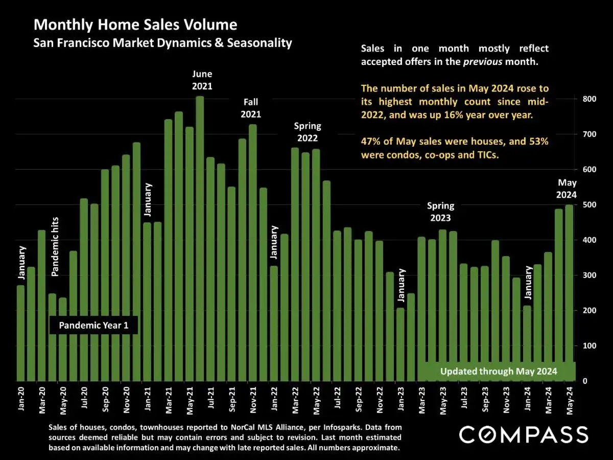 The number of sales in May 2024 rose to its highest monthly count since mid-2022