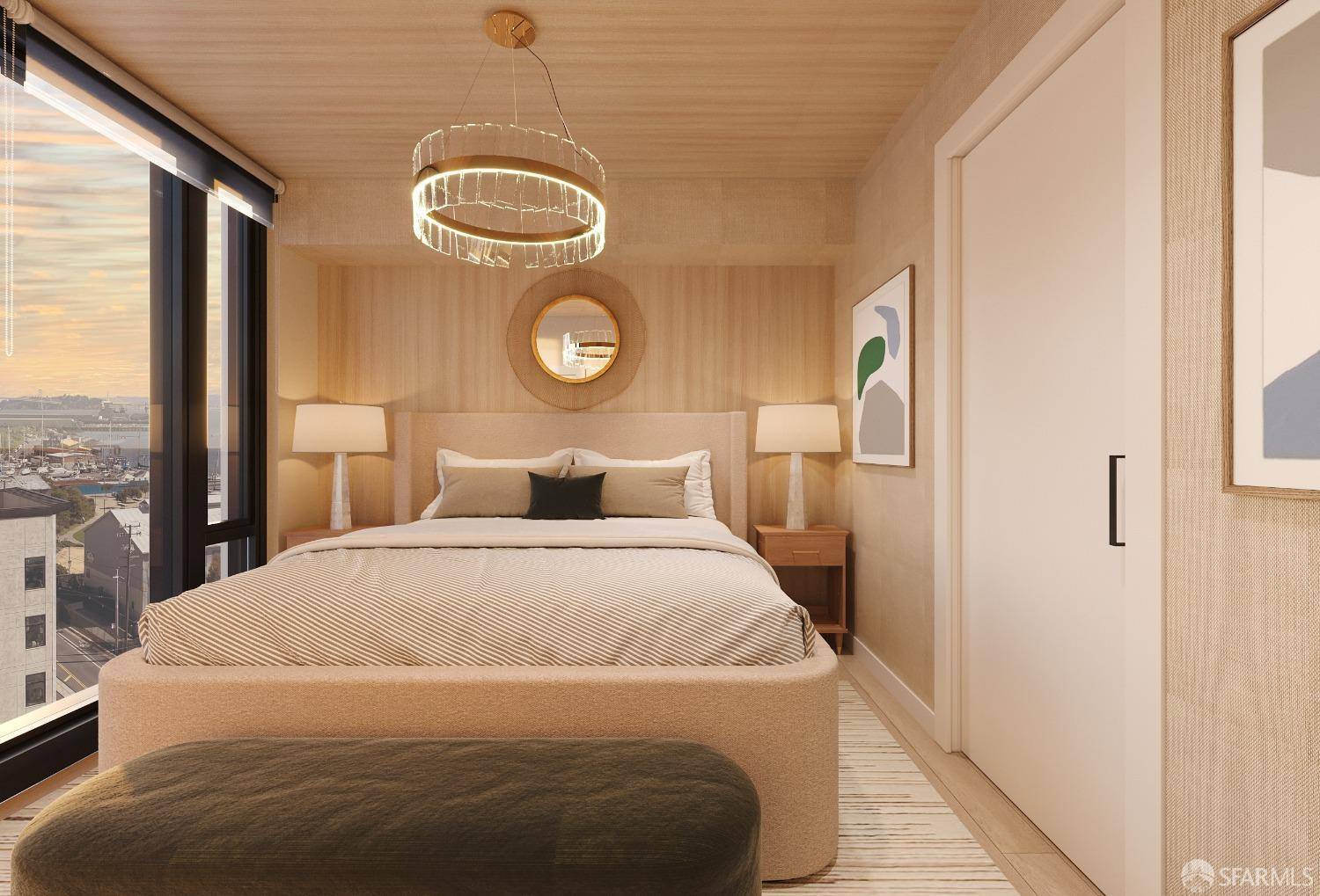 Newly released top-floor 2-bedroom, 2-bathroom, penthouse with stunning Crane Cove Park, water views, and breathtaking views of the Bay Bridge. This modern home boasts integrated Miele appliances, Greek Naxos marble countertops, an oversized island with wine fridge, and custom Italian cabinetry with LED lighting. The expansive rooftop deck is perfect for entertaining, featuring a gas grill, fridge, wash sink, ice maker, and space for a custom hot tub - rare opportunity. The home also includes 2 tandem parking spaces on the floor.