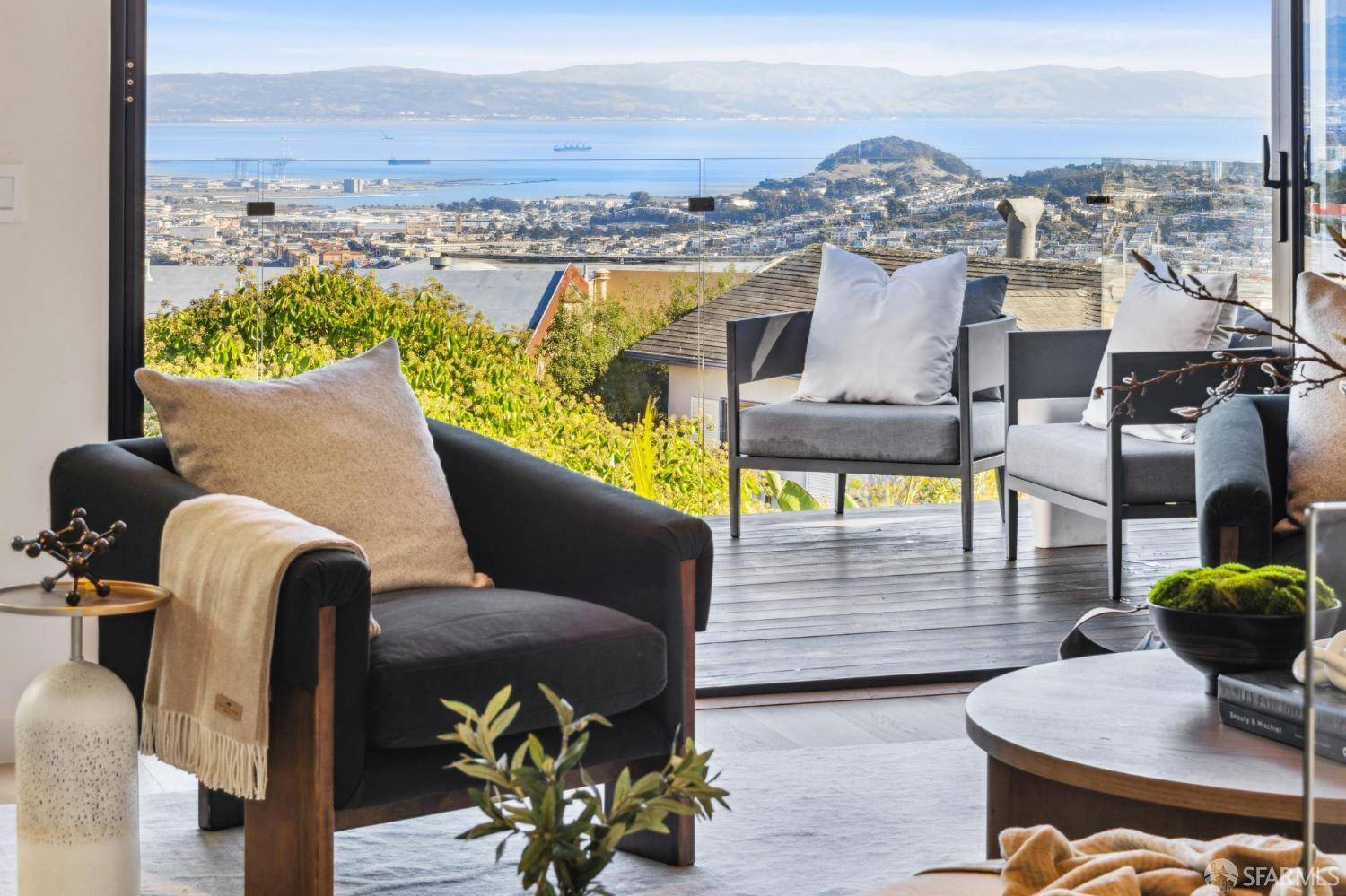 Nestled in the serene Miraloma Park neighborhood, 11 Sherwood Court is a fully renovated home with breathtaking views of San Francisco and the Bay. This 4-bedroom, 3.5-bath residence features an expansive main level with an open floor plan and dramatic floor-to-ceiling folding glass doors that blend indoor and outdoor living. Panoramic vistas provide a stunning backdrop from dawn to dusk. The main level showcases a gourmet kitchen with Thermador appliances, a large waterfall island, and custom cabinetry flowing into a charming breakfast nook. The seamless living and dining areas, anchored by a fireplace and sweeping views, are ideal for entertaining. A luxurious primary en-suite, two additional bedrooms, and a full bath complete this level. The lower level offers a family room with wet bar, home office, powder room, and private guest suite. A tranquil backyard and dedicated laundry room enhance everyday comfort. Additional features include a two-car garage with EV charger, engineered wood floors, a hydronic heating system, and designer lighting. Located near Mt. Davidson trails, public transit, top-rated schools, and the amenities of West Portal, Miraloma Park, and Glen Park, 11 Sherwood Court delivers modern luxury and quintessential San Francisco living.