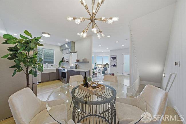 A rare 3-level North Slope condominium with jaw-dropping Downtown and Bay views that lives like a house with no upstairs or downstairs neighbors. As part of anintimate 2-unit building, this property features high ceilings, abundant natural light, beautiful bamboo floors, and EV garage parking, if needed, with interior access.The top-level features the primary bedroom with dramatic skyline views, a walk-in closet, and a downtown view spa bathroom. Start your day or end it on a spacious walk-out panoramic view deck. The mid-level offers open concept living with a gas fireplace and a remodeled kitchen with high-end appliances, including a Bosch refrigerator, dishwasher, and induction stove. A second walk-out deck also has incredible views The ground floor has two nice sized bedrooms and a full bath.Depending your stage in life these could be great home offices. The low HOA are just $350/month covering insurance, water and trash. In addition to fantasticviews the this location means you can walk to Caltrain, enjoy endless dining, and reach 101/280 in minutes. Steps from Chase Center, Oracle Park, and Mission Bay with a Walk Score of 93.The North Slope of Potrero Hill delivers sunshine, spectacular views, easy commutes, and true neighborhood character. Come see and fall in love.