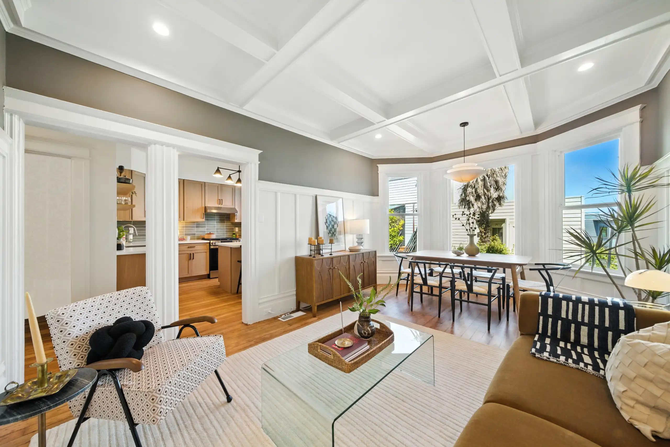 Welcome to this gracious, beautifully updated full-floor two-bedroom unit located on a charming block in Corona Hts on the border of Castro/Eureka Valley! Brimming with old-world charm and modern luxuries, this fast-track condo-eligible TIC is not to be missed. Behind a classic, elegant façade in a lovely two-unit building, this bright and spacious full-floor residence boasts high ceilings, large windows, and period details that create a warm and elegant ambiance. The newly remodeled kitchen, with a center breakfast island, is a chef’s dream, featuring sleek cabinetry, gleaming quartz countertops, and all-new stainless steel appliances and seamlessly flows into an adjacent comfortable living/dining area that makes everyday living easy. The bathroom has also been stylishly updated with stunning tilework and contemporary finishes and refinished Douglas fir floors throughout add timeless beauty and sophistication. The home also features all-new windows and a new heating system for enhanced comfort and efficiency. Additional highlights include a spacious in-unit laundry room, a beautifully landscaped shared backyard, and ample basement storage. With the best of the Castro and Market Street just a short stroll away, this location offers easy access to vibrant shops, eateries, public transit, and freeways—making it ideal for the modern urban lifestyle!