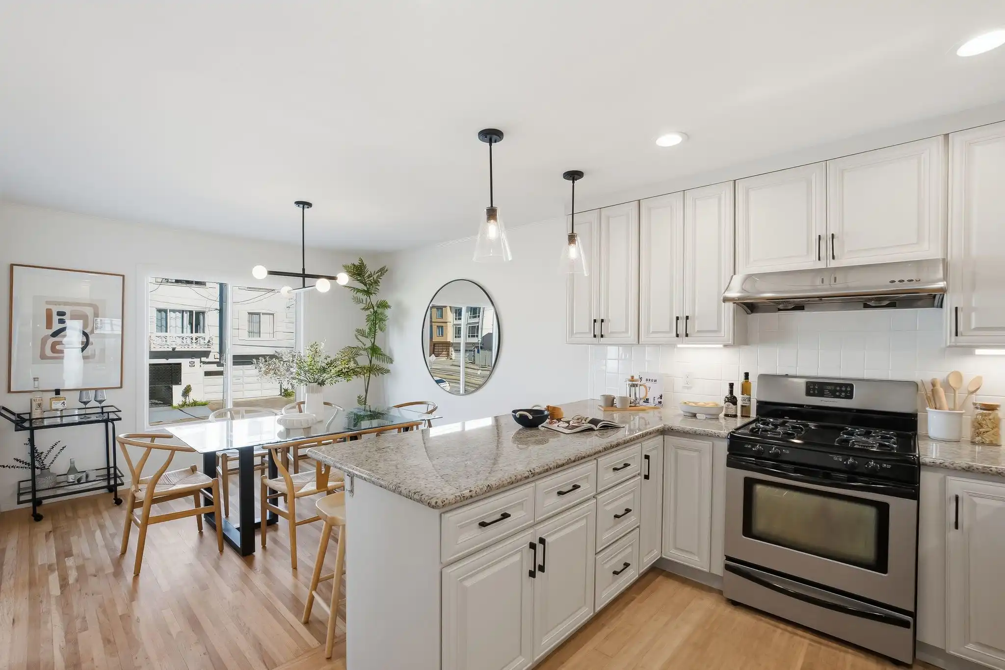 - Well-appointed kitchen with granite countertops, abundant cabinetry with stainless steel appliances and breakfast bar
