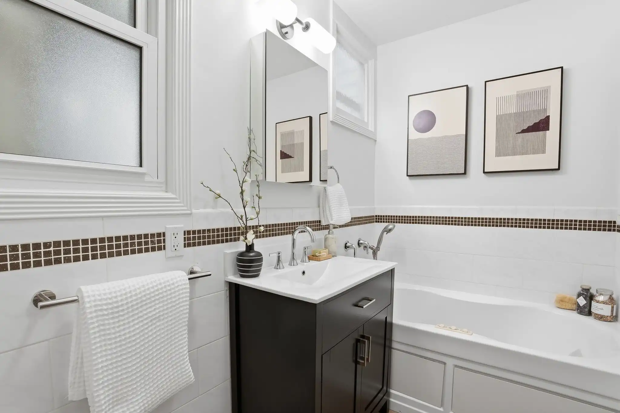 - Updated bathroom with deep soaking tub and separate shower w/ new vanity