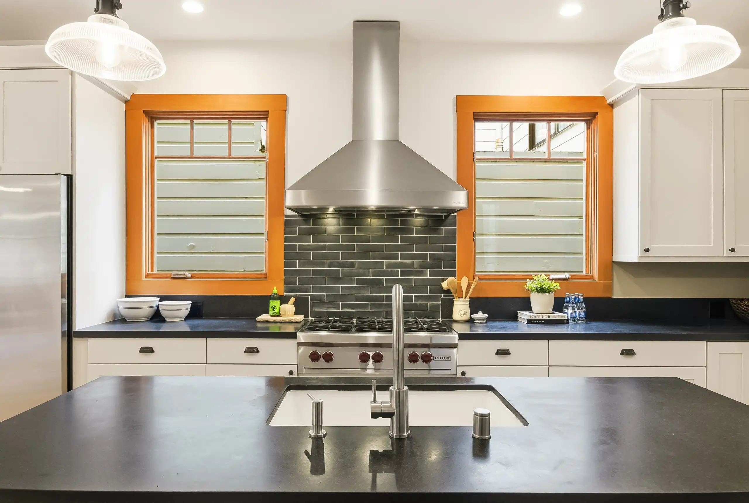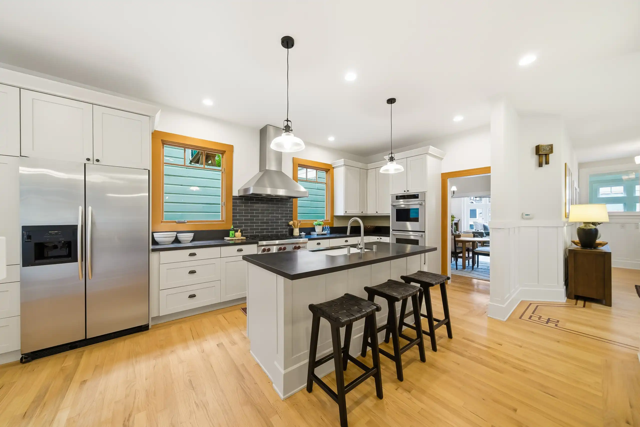 • Bright eat-in kitchen with generous storage and prep space