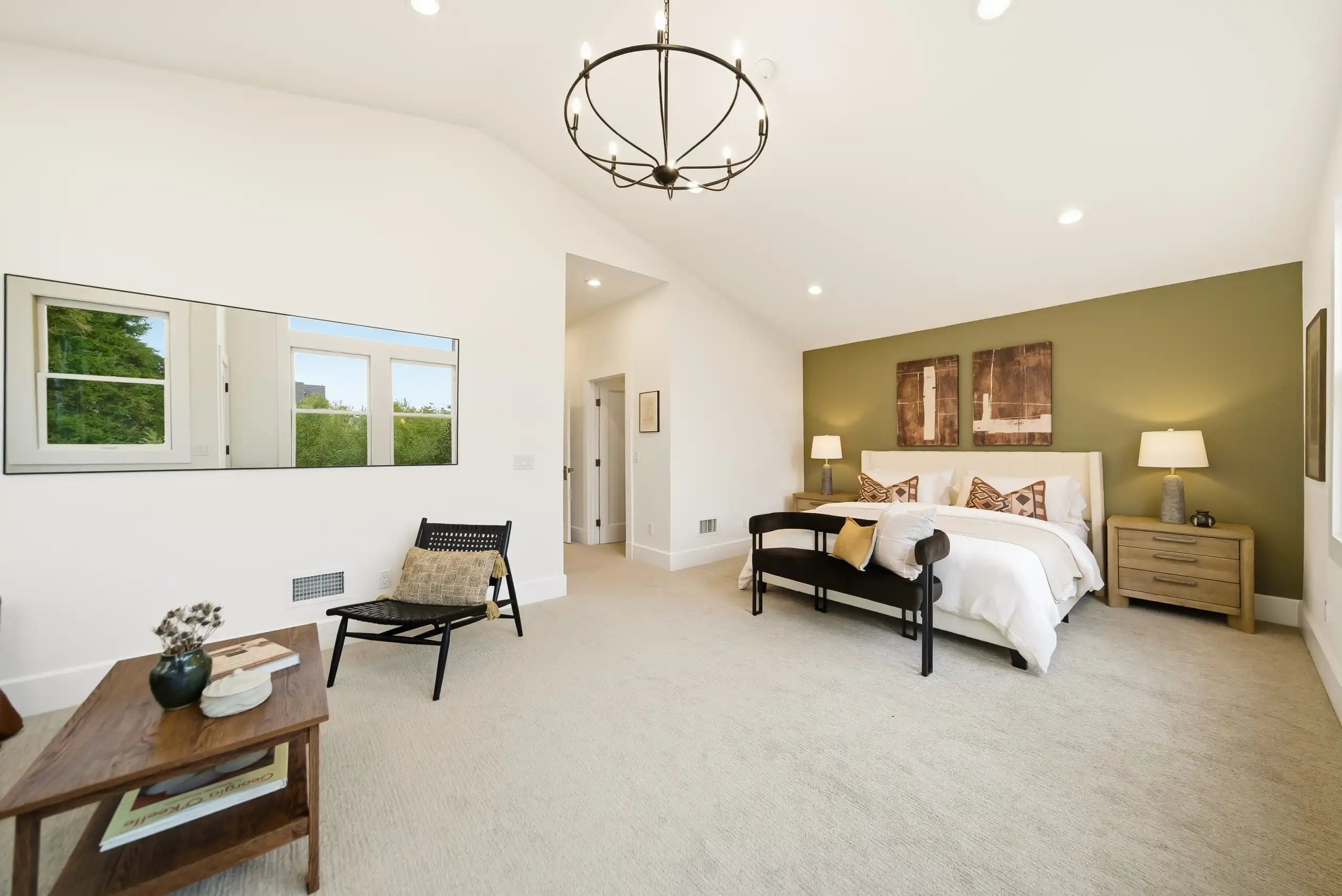 • Large primary suite with vaulted ceilings, sitting area, walk-in closet, en-suite bath, and outdoor access