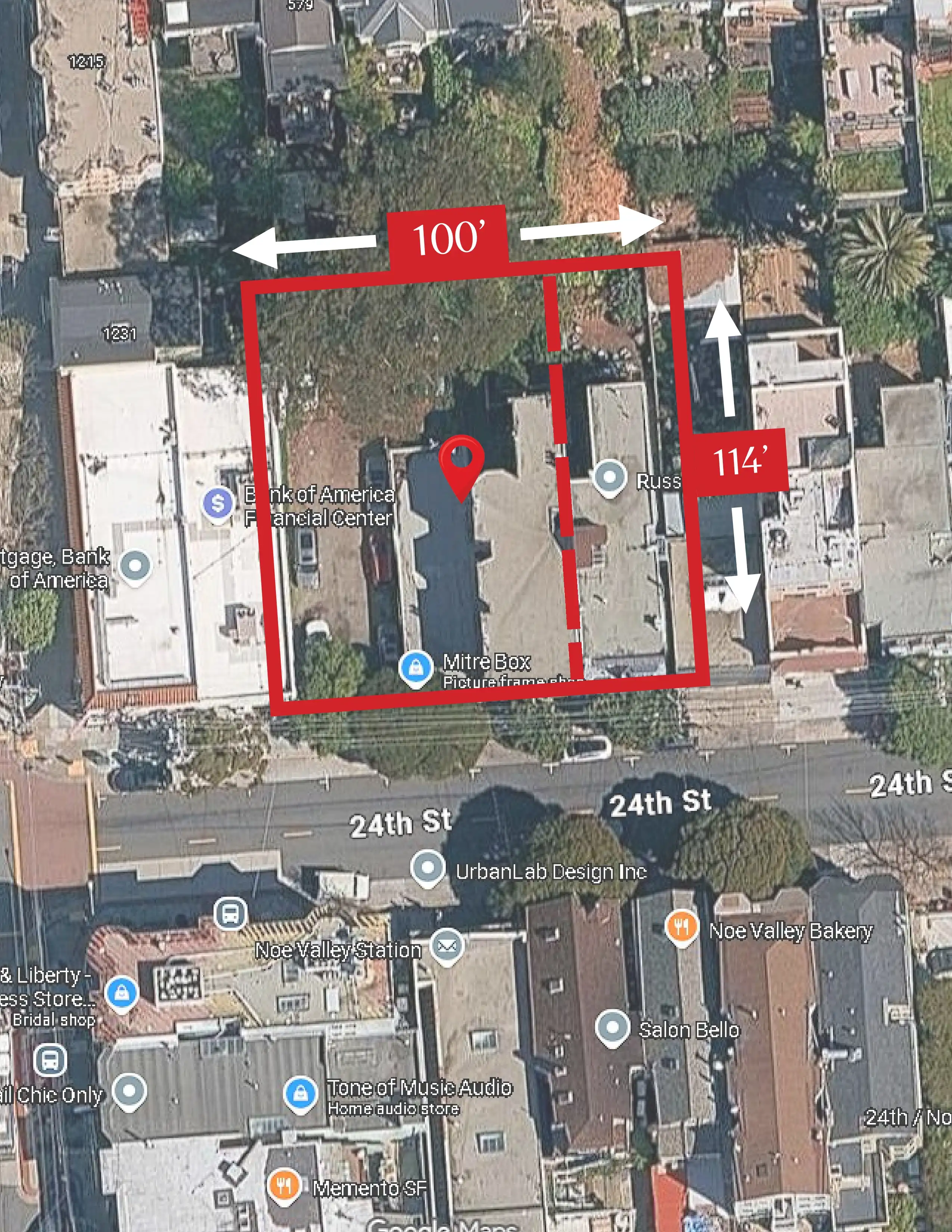 Positioned at the heart of Noe Valley’s beloved 24th Street corridor and spanning 75 feet of prime frontage, this exceptional mixed-use parcel combines an ultra-rare open- air parking lot, a stand-alone retail structure (Mitre Box), and an adjacent mixed-use building featuring retail space (Eyes on 24th) with two residential units above. With an 8,550 SF lot (75 ft frontage and 114 ft depth) the site presents a compelling opportunity to reimagine and reshape this stretch of 24th Street. Its unique combination of scale, visibility, and street frontage is nearly impossible to find in today’s market. Preliminary architectural massing drawings illustrate the potential for 10–12+ new residences, ground-floor commercial space, multiple outdoor areas, common amenities, and on-site parking. When paired with the City’s (proposed) Family Zoning Plan, these concepts demonstrate the possibility for over 18,000 SF of total gross Residential/Commercial area, including a mix of one- to three-bedroom homes with premium upper-level units and outdoor spaces.