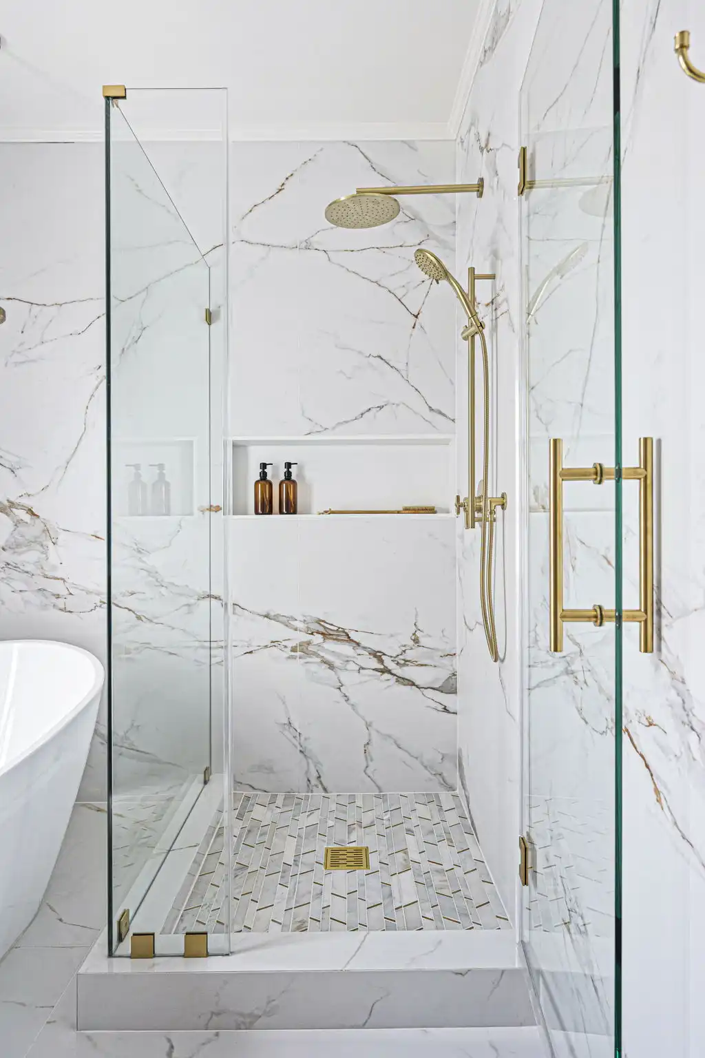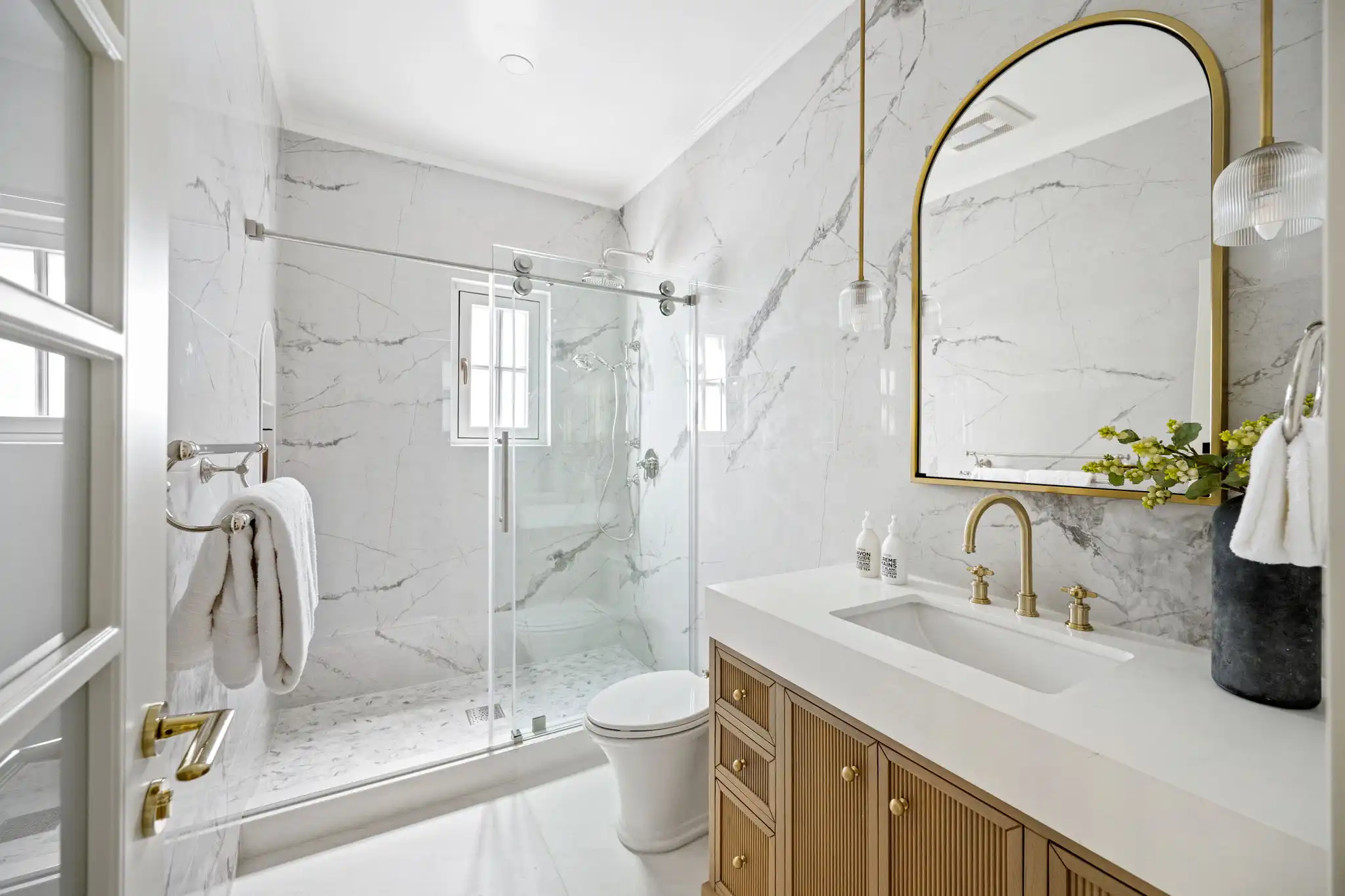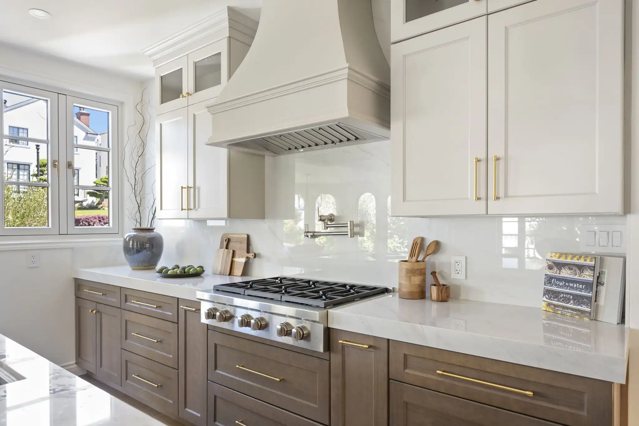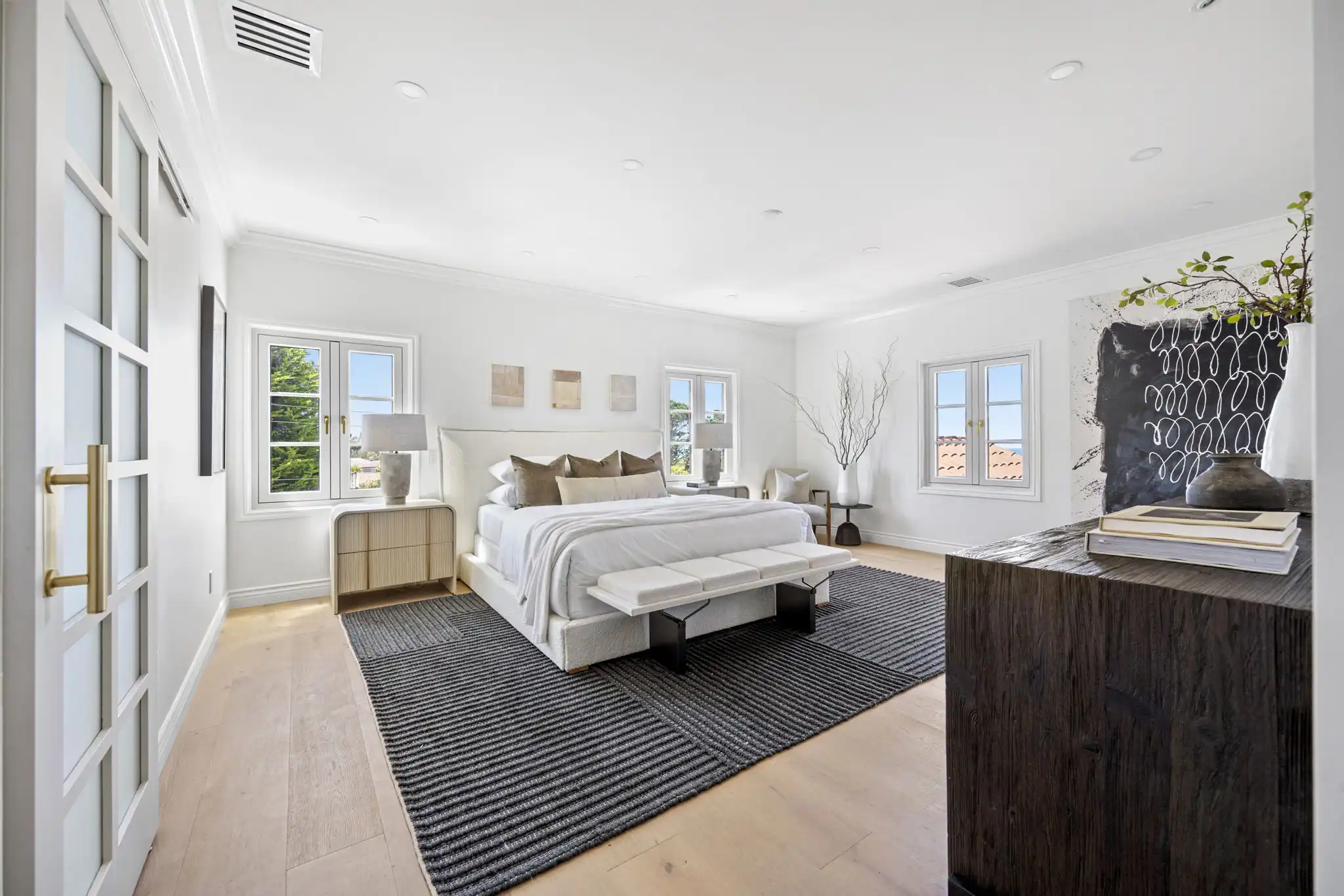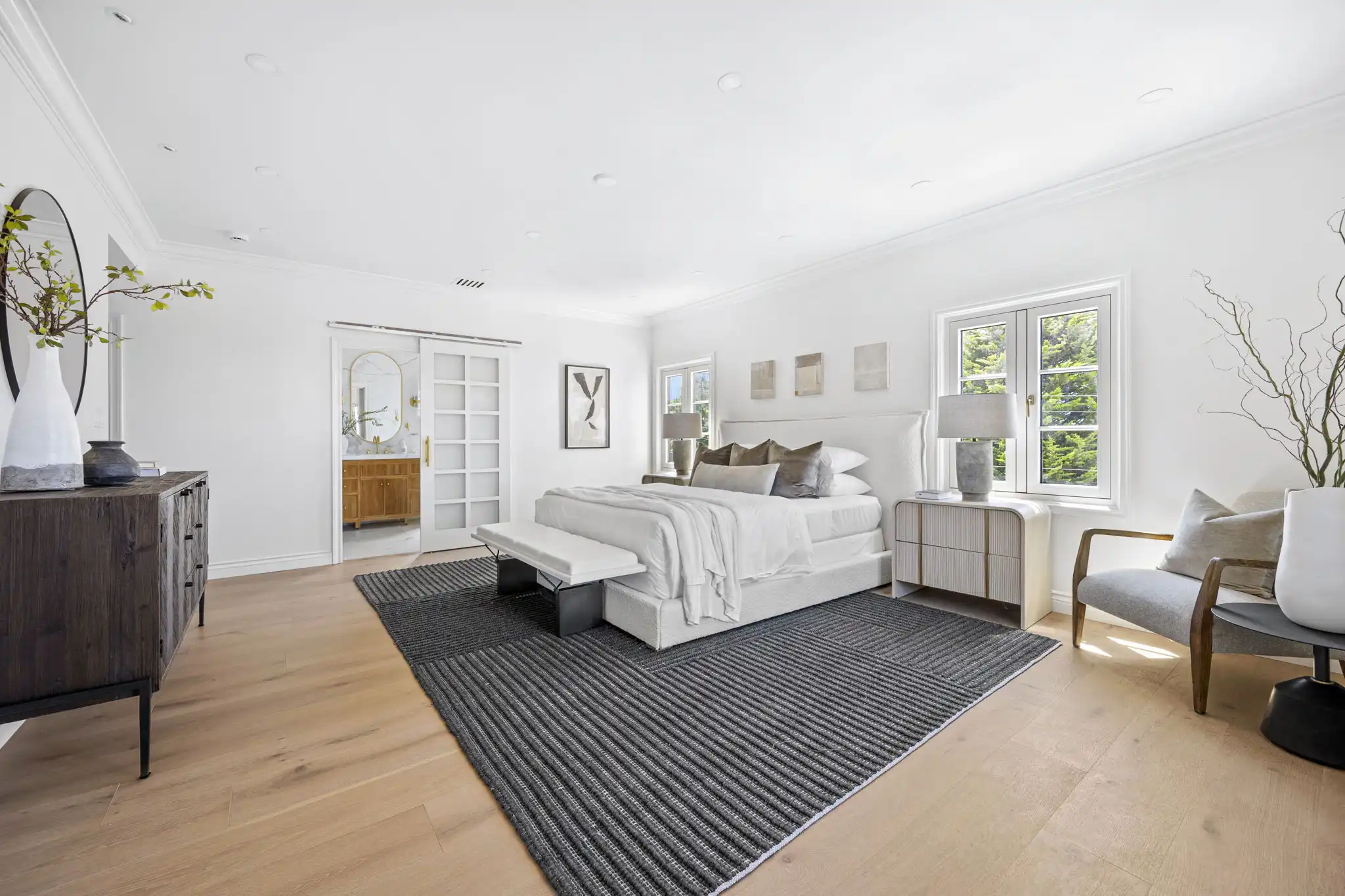- Spa-like primary suite with soaking tub, House of Rohl shower system, and handcrafted teak and white oak vanities