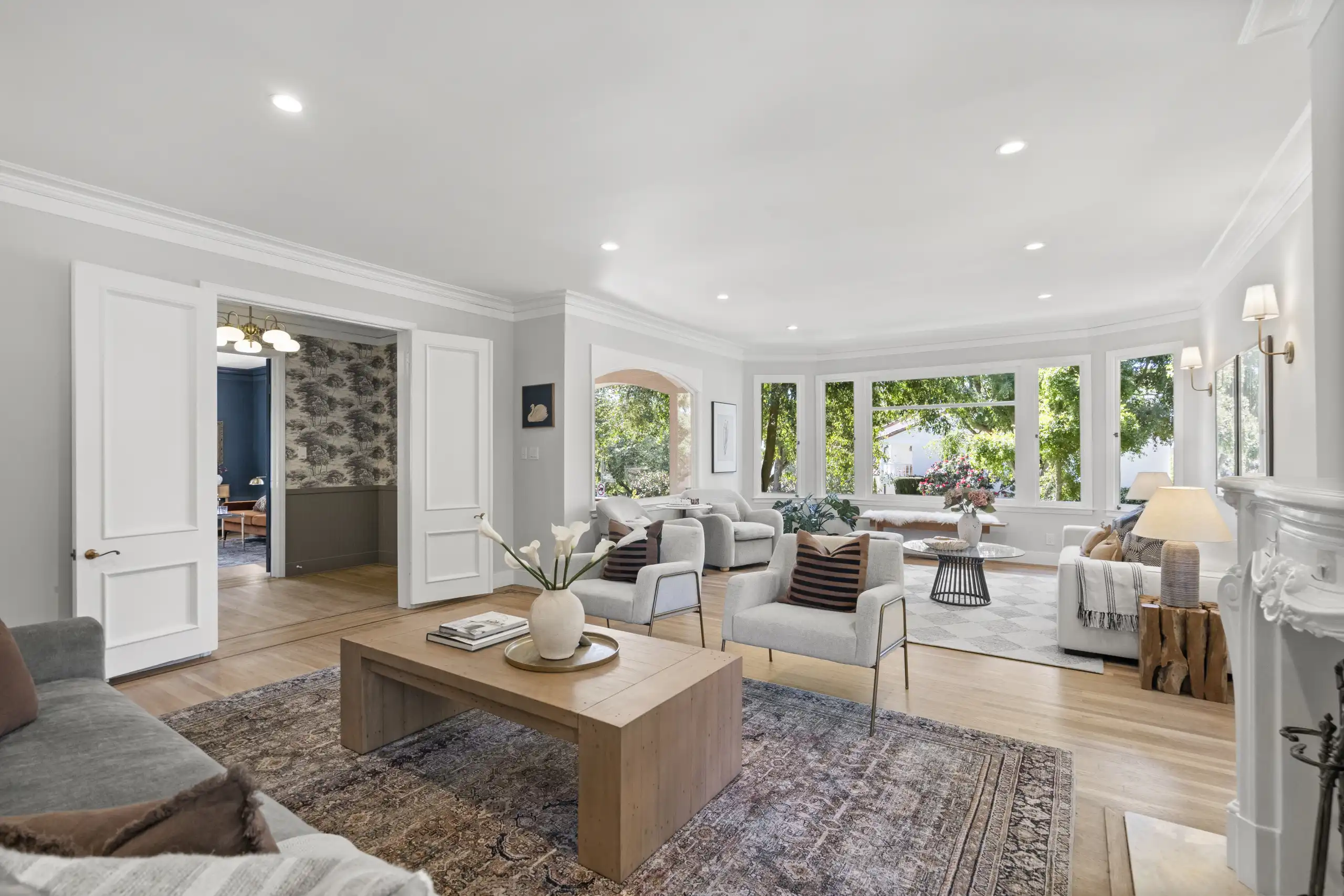 • Grand interior includes soaring ceilings, exquisite architectural details, and refinished hardwood floors, enhancing the home's timeless elegance